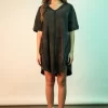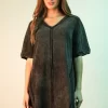Mineral Washed Ribbed Knit Mini Dress – Black