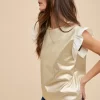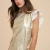 Mix Media Metallic Knit Ruffle Sleeve Top – Ice Gold