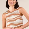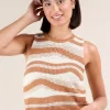 A multi-color stripe knit crop tank is a trendy and eye-catching top featuring colorful stripes in a cropped silhouette. This tank is perfect for adding a fun and playful pop of color to your outfit. The knit fabric offers a comfortable and stretchy fit, making it ideal for warm weather days. Pair this crop tank with high-waisted bottoms for a fashionable and stylish look.