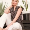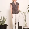 Multi Dot Print Sleeveless Button Down Blouse – Black