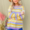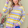 Multi Striped Mesh Pullover Spring Sweater – Violet