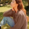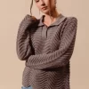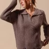 Notched Collar Wavy Texture Sweater Top – Coffee