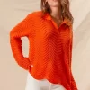 This notched collar wavy texture sweater top is a modern and stylish piece for your wardrobe. The unique wavy texture adds a touch of interest and dimension to the top. The notched collar detail elevates the design, making it a versatile option for both casual and dressier occasions.