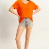 Oversized V-Neck Relaxed Tee – Tomato