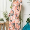 Paisley Print Short Sleeve Maxi Dress with Pockets – Orange Paisley