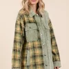 Plaid Button Down Drop Shoulder Jacket – Olive