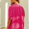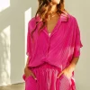 Pleated Short Sleeve Shirt and Shorts Set – Fuchsia