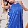 The Pleating Knit Halter Neck Top is a sophisticated and stylish piece that features pleating details and a halter neckline. The pleating adds texture and visual interest to the knit fabric, creating a more dynamic and elegant look. The halter neckline is flattering and adds a touch of chicness to the top. This top is versatile and can be dressed up or down for different occasions. Pair it with tailored pants or a skirt for a polished and dressy outfit, or with jeans for a more casual yet fashionable look. The combination of pleating, knit fabric, and halter neckline makes this top a refined and stylish addition to any wardrobe.