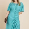 Plus Size Front Ruched Adjustable Drawstring Dress – Mint