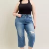 Plus Size High Waist Back Destroy & Raw Cut Hem Crop Wide – Medium