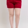 Plus Size High Waist Tummy Control Garment Dyed Heart Shaped Denim Shorts – Scarlet