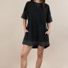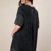 Plus Size Mineral Washed Comfy Casual Knit Mini Dress – Black