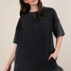 The mineral washed comfy casual knit mini dress combines comfort with style. Its mineral wash gives it a unique and trendy appearance. Perfect for a laid-back and effortlessly chic outfit.