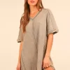 A mineral washed ribbed knit mini dress offers a trendy and stylish look. The ribbed knit fabric adds texture and comfort to the dress. The mineral wash treatment gives it a unique, slightly worn-in appearance. Perfect for a casual yet fashionable outfit.
