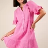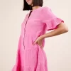 Plus Size Mineral Washed Woven Mini Dress – Pink