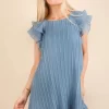 Plus Size Ruffle Sleeve Pleated Woven Mini Dress – Denim