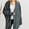 Popcorn Knit Open Front Long Sleeve Cardigan – Dark Olive