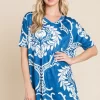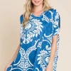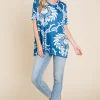 Printed Relaxed V-Neck Tunic Top – Blue