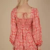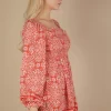 Printed Smocked Chest Boho Mini Dress – Rust