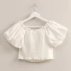 The Puff Sleeve Sweetheart Neck Top is a romantic and trendy piece that exudes femininity. The sweetheart neckline adds a touch of charm and elegance to the top. The puff sleeves give a playful and stylish look, adding volume to the shoulders. This top is perfect for dressing up a casual outfit or adding a romantic flair to your wardrobe. Pair it with high-waisted pants or a skirt for a chic and sophisticated ensemble that is sure to turn heads.