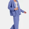Quilted Button Up Long Sleeve Top and Pants Lounge Set – Blue Purple