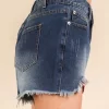 Raw Hem Pocketed Contrast Washed Denim Shorts – Denim