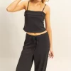 Elevate your loungewear game with this Rib Knit Cami Top and Pants Set. The ribbed knit fabric adds texture and interest to the set, creating a cozy and stylish look. The cami top offers a flattering silhouette and a hint of chic elegance, while the coordinating pants provide ultimate comfort with a stylish edge. This set is perfect for relaxing at home or running quick errands in style. Embrace comfort and fashion with this versatile and trendy loungewear set that combines style and comfort effortlessly.