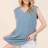 The rib knit V-neck tank is a stylish and versatile piece for your wardrobe. The ribbed texture adds depth and interest to the tank, while the V-neckline offers a flattering and chic look. Perfect for layering or wearing on its own, this tank can be dressed up or down for various occasions. Pair it with jeans, shorts, or a skirt for a classic and timeless outfit.