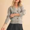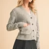 Ribbed Hem Button Down V-Neck Cardigan – Gray