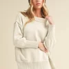 Ribbed Hem Side Slit Round Neck Sweater – Ivory