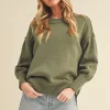 Ribbed Hem Side Slit Round Neck Sweater – Olive