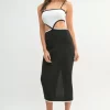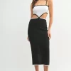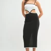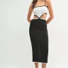 Ribbed Knit Color Block Cutout Midi Dress – Black