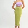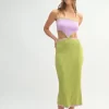 Ribbed Knit Color Block Cutout Midi Dress – Lime