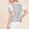 Ribbed Leopard Print Ruffle Detail Sleeveless Top – White Combo