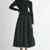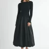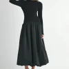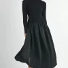 Ribbed Poplin Mix Midi Sweater Dress – Black