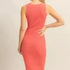 Ribbed Round Neck Sleeveless Knit Midi Dress – Coral