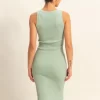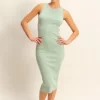 Ribbed Round Neck Sleeveless Knit Midi Dress – Gum Leaf