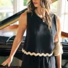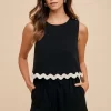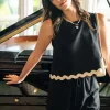 Ric Rac Trim Detailed Top & Shorts Set – Black