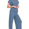 Rolled Sleeve Top and Pants Sweater Set – Dusty Blue
