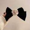 Rose Trim Bow Hair Clip – Black