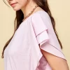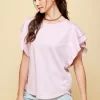 Round Neck Double Ruffle Cap Sleeve Top – Dusty Pink