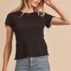 Round Neck Lettuce Hem Short Sleeve T-Shirt – Black