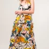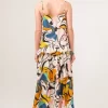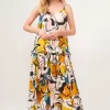 Ruffled Abstract Floral Printed Midi Cami Dress – Multi