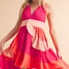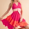 Ruffled Color Block Sleeveless Mini Dress – Pink Combo