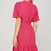 Ruffled Hem Notched Flutter Sleeve Mini Dress – Strawberry