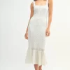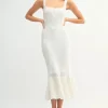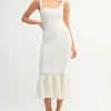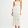 Ruffled Hem Sleeveless Crochet Knit Midi Dress – Off White