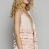 Ruffled Open Front Sleeveless Cardigan – Blush Pink
