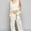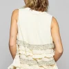 Ruffled Open Front Sleeveless Cardigan – Cream Multicolor
