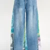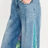 Sage + Fig Raw Hem Paisley Print Side Wide Leg Jeans – Medium