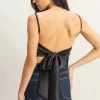 The satin back tie detail cami is a sophisticated and luxurious piece that adds a touch of elegance to your outfit. The satin fabric offers a silky and smooth texture, perfect for dressing up any look. The back tie detail adds a feminine and chic element, allowing you to adjust the fit to your liking. This cami is versatile and can be styled in various ways – wear it alone with jeans or dress it up with a blazer and trousers for a more formal look. The satin fabric and tie detail create a sleek and stylish ensemble that is perfect for both casual and dressier occasions.